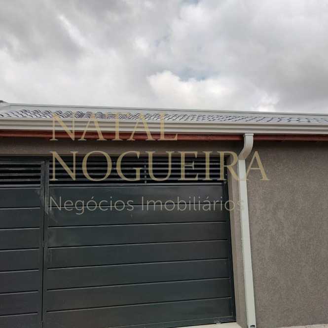 Frente da casa fechada e coberta, com portão eletrônico de correr